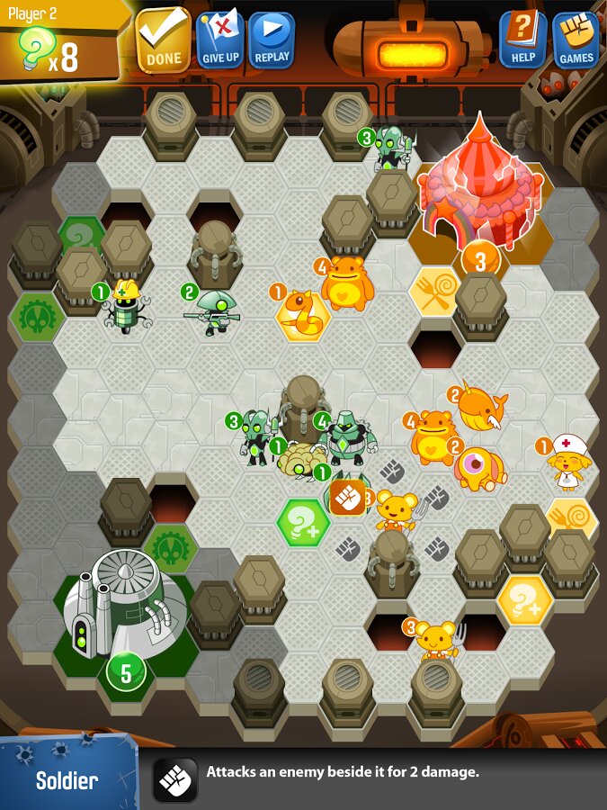 Outwitters – яркая пошаговая стратегия для Android, знакомящая нас с историей необычных враждующих существ. Жители бескрайнего океана, роботы из будущего, раса милых плюшевых игрушек и кровожадные зубастые растения скрестили свои клинки в надежде стать повелителями местных земель.