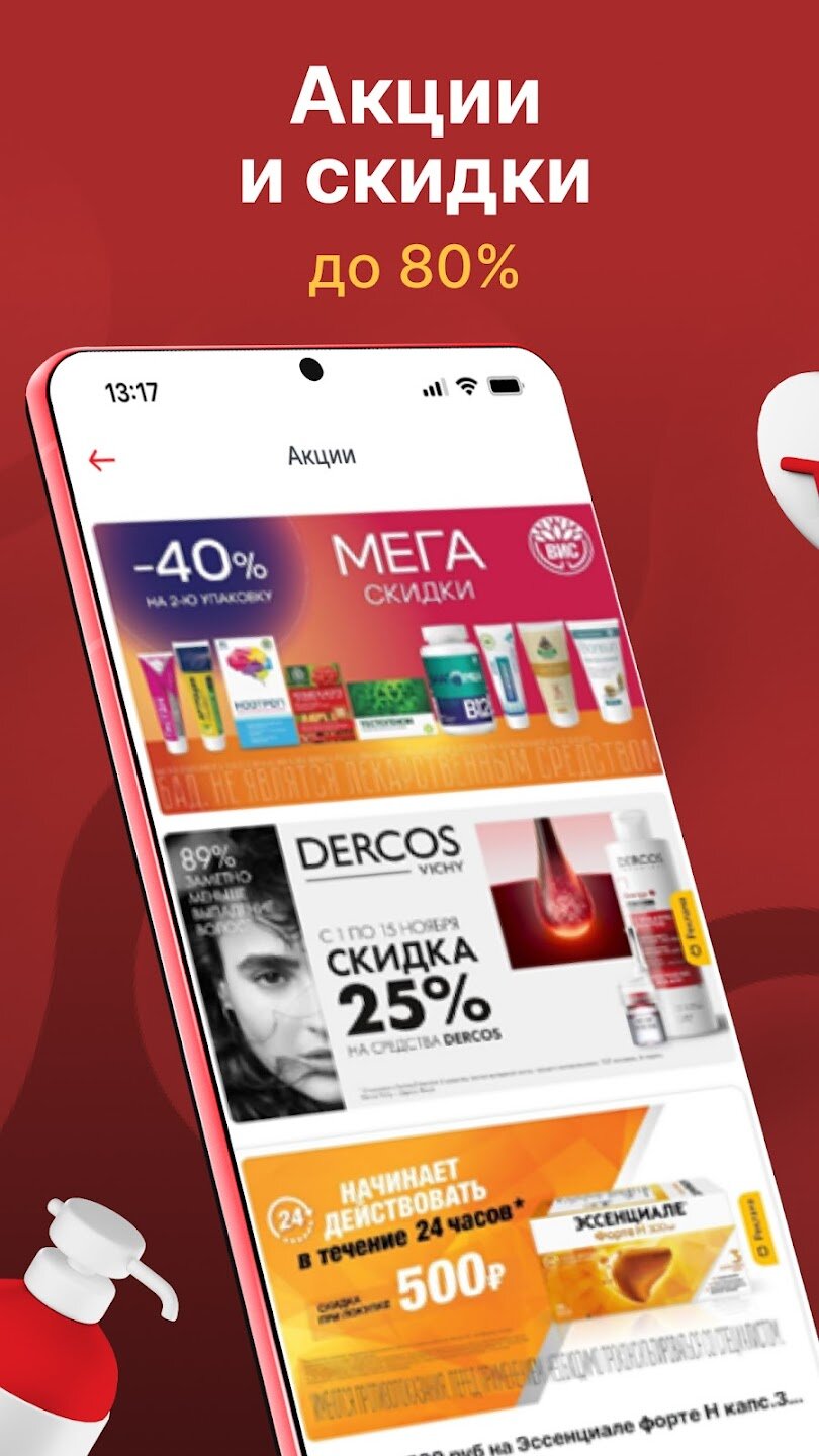 • Бонусная карта “Забота о Здоровье”. Карта автоматически закрепляется за вами по номеру телефона при регистрации в приложении. Вы сможете следить за бонусным балансом и получать персональные предложения, скидки.