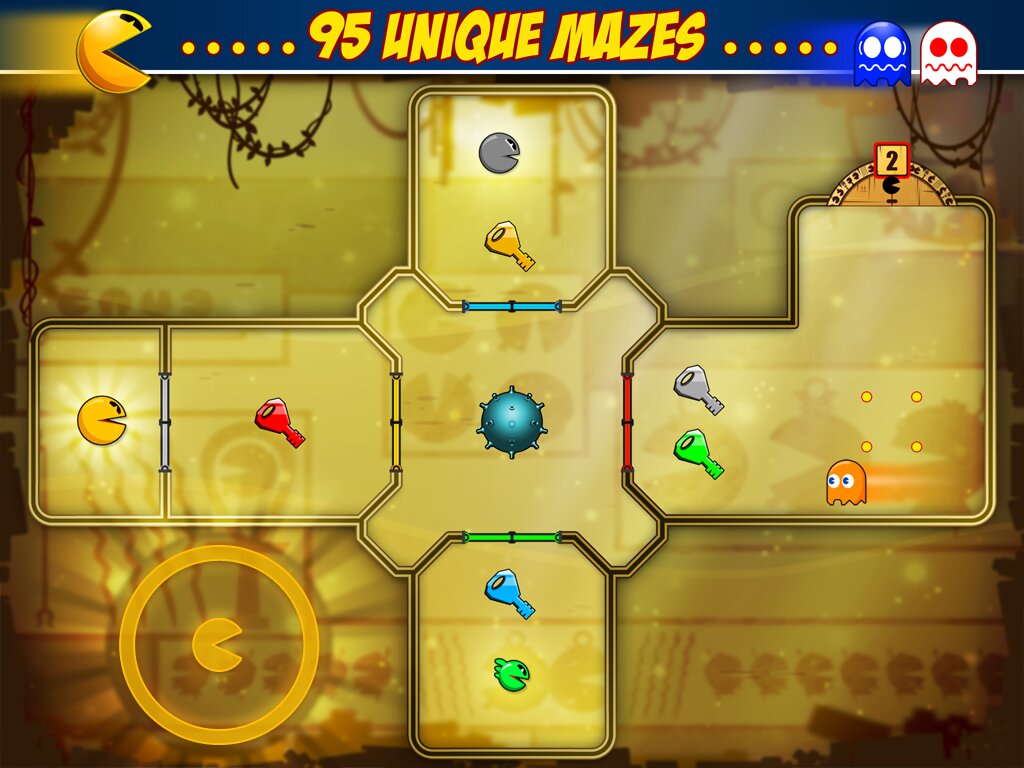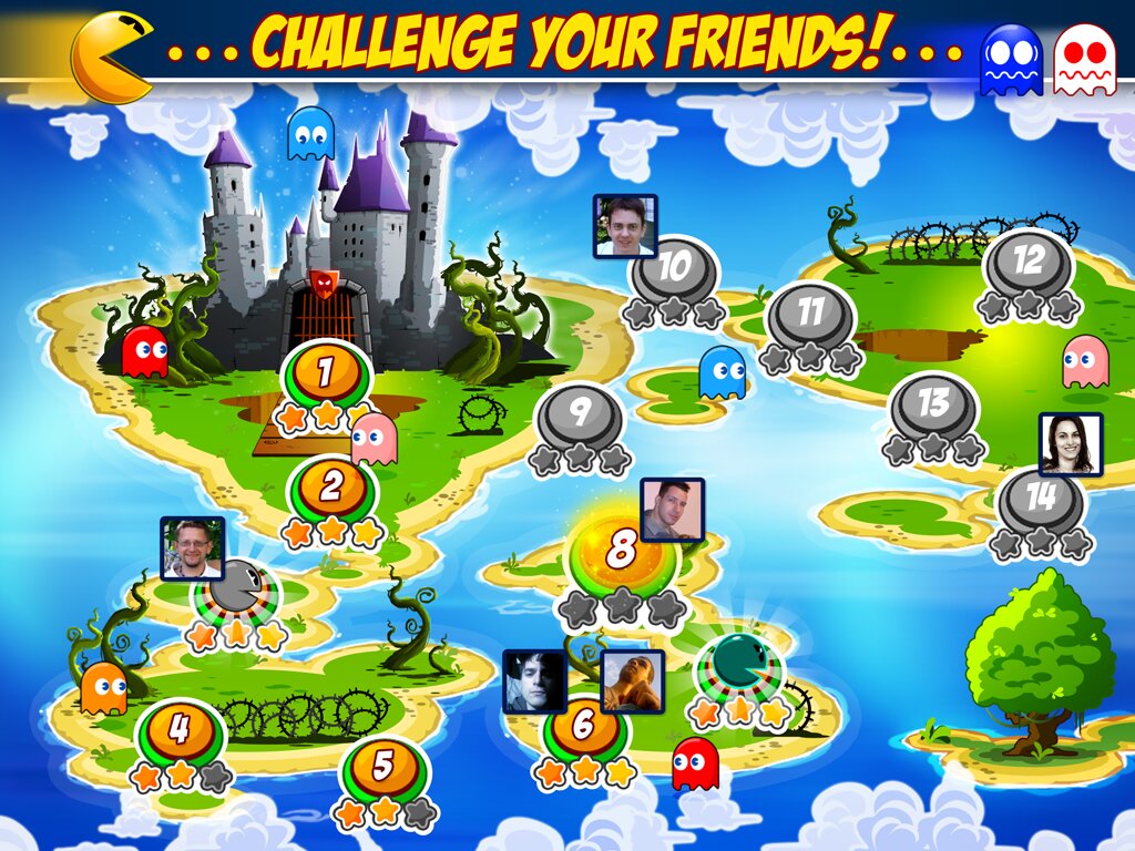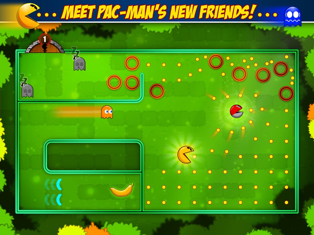 Pac-Man friends — знаменитый Пэк-Мэн, герой классической игры, снова в деле! Теперь он должен освовободить своих друзей из замка призраков. Все более сложные лабиринты ожидают Вас на каждом новом уровне этой игры для Андроид. Избегайте старых врагов Пэк-Мэна, призраков Блинки, Инки, Пинки и Клайда. Если они поймают героя, то он потеряет жизнь. В случае опасности используйте разнообразные бонусы. Например, на время поменяйтесь местами с монстрами и съешьте врагов! Или используйте замедлитель времени. Пройдите все уровни и освободите 8 друзей.