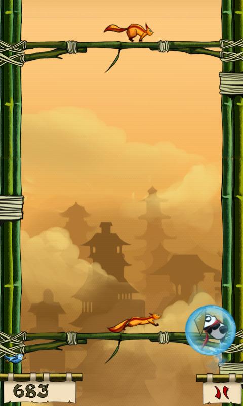 Panda Jump — это очень динамичная аркадная игрушка для Android из категории джамперов. Ваша основная задача в игре состоит в том, чтобы поставить очередной рекорд по преодоленному расстоянию. Наверняка одно только название этой игры напомнило Вам о первопроходце данного жанра — Doodle Jump, хотя в действительности между этими двумя играми практически нет ничего общего. Все потому, что в Panda Jump Вам предстоит преодолевать расстояние, карабкаясь по вертикальным стенам, а не перепрыгивая с одного летающего островка на другой.