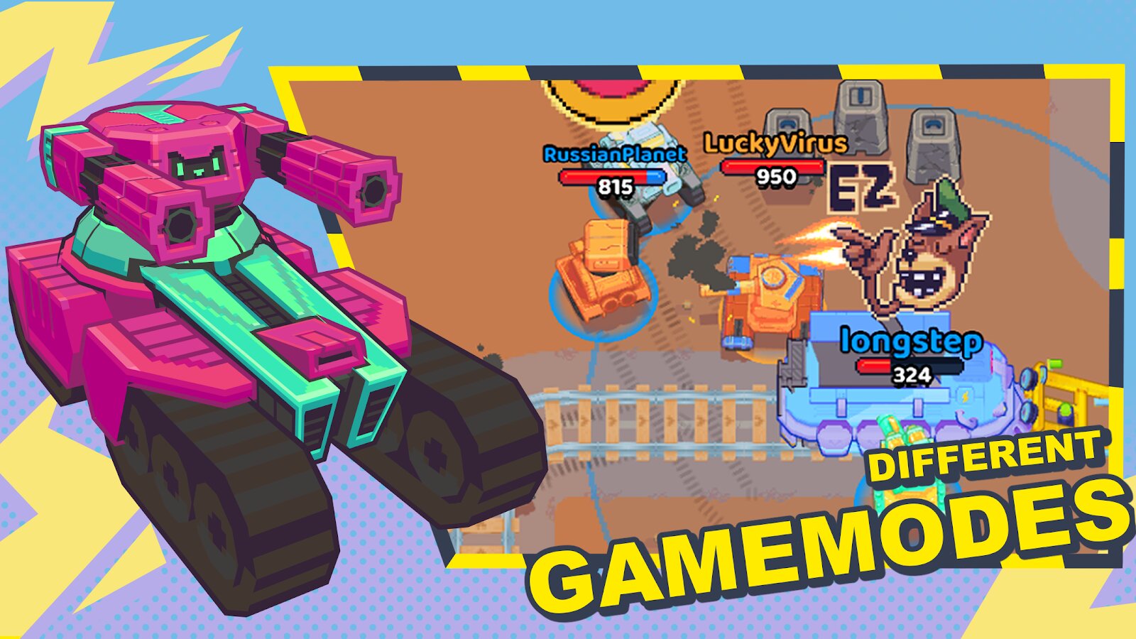 Panzerdogs — это динамичная онлайн-игра про танковые сражения в формате PvP, созданная для мобильных устройств. Участвуйте в захватывающих битвах в одиночку или с друзьями, сражайтесь в различных игровых режимах, таких как командный бой, эскорт, и ждите еще больше уникальных режимов в будущих обновлениях.