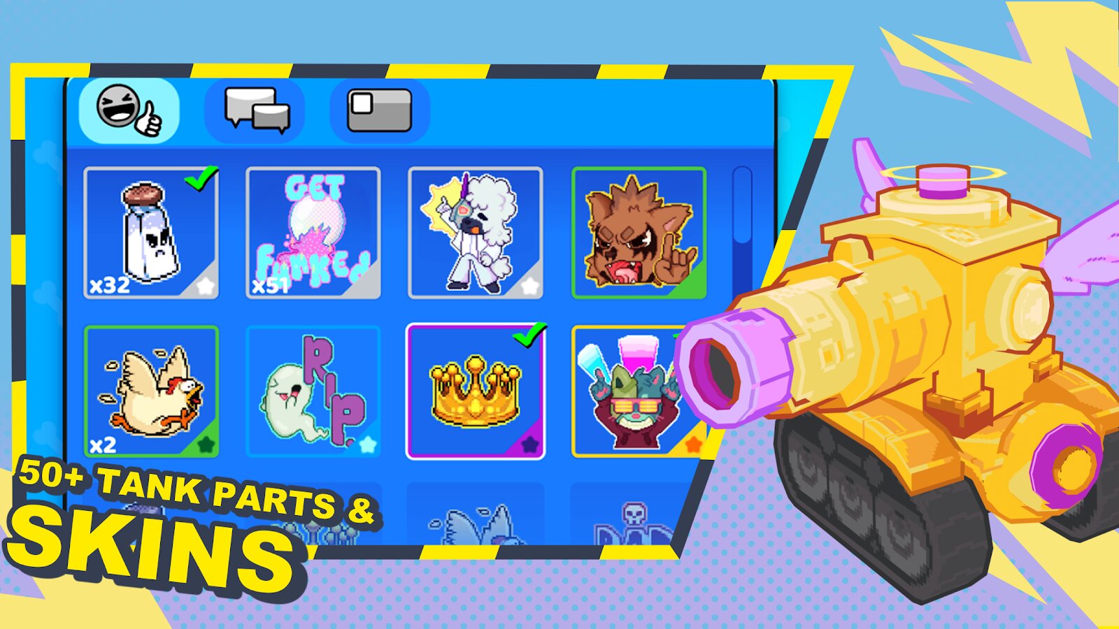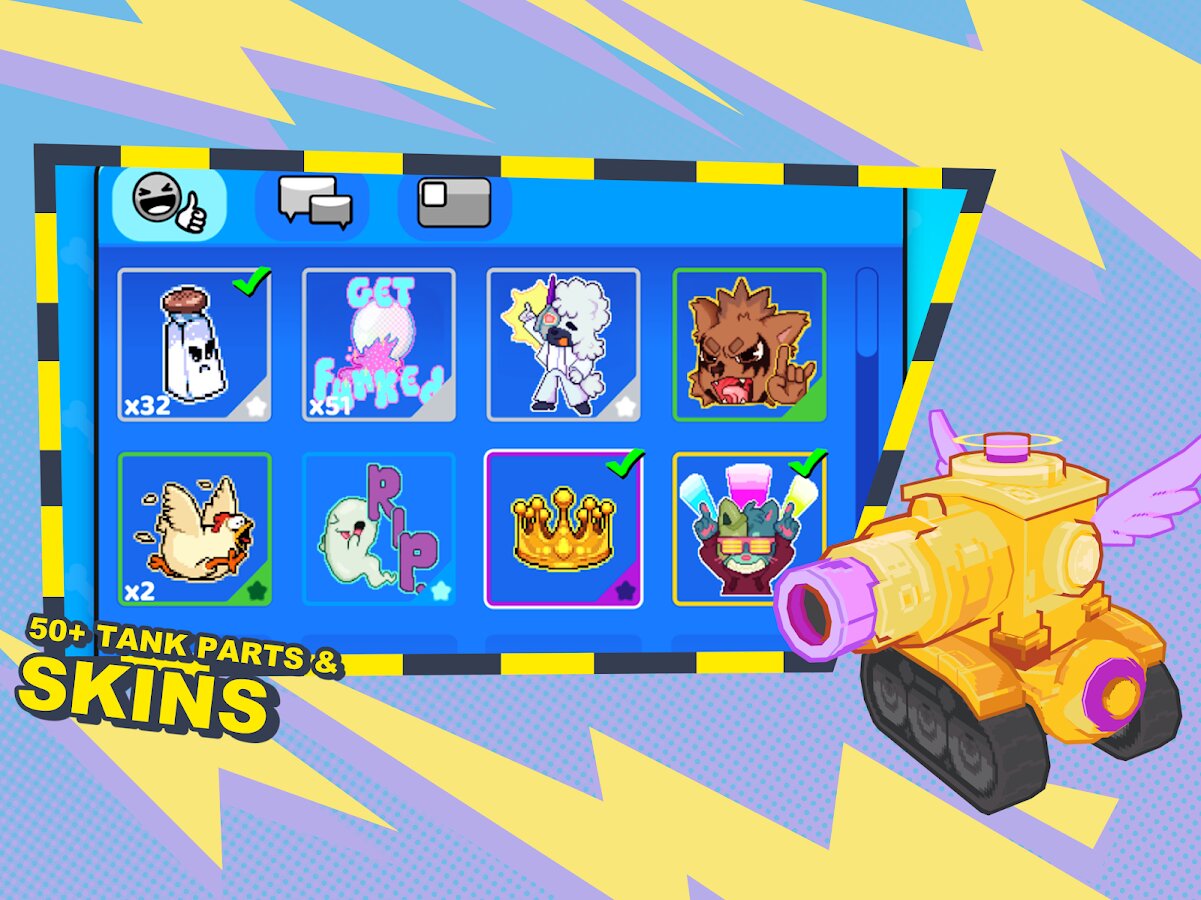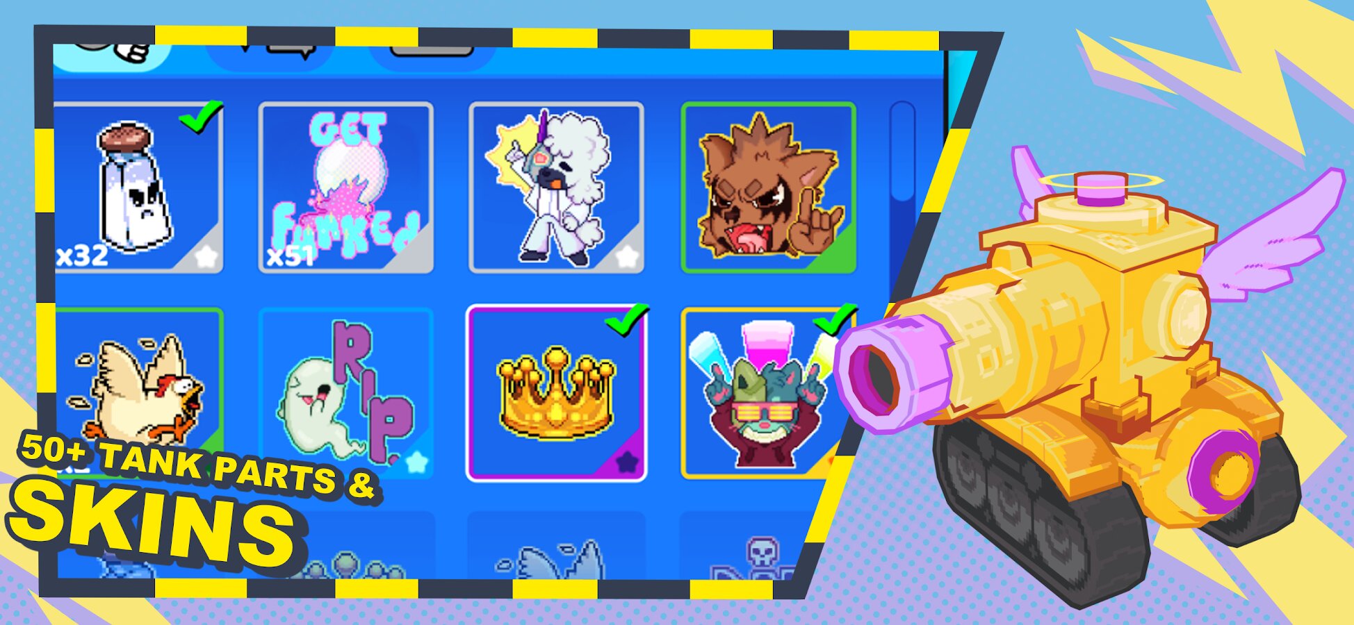 Создавайте свои танки с помощью сборки и кастомизации. Настройте внешний вид и характеристики, используя уникальные части, такие как шасси, башни и корпуса, чтобы построить танк своей мечты и доминировать на поле боя.