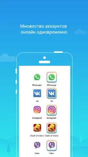 Parallel Space — является приложением, которое может запустить несколько копий одного приложения в одно и то же время на разных аккаунтах. Нажмите на + в интерфейсе и выберите приложение, которое вам требуется клонировать. Второй аккаунт не будет влиять на основной аккаунт.