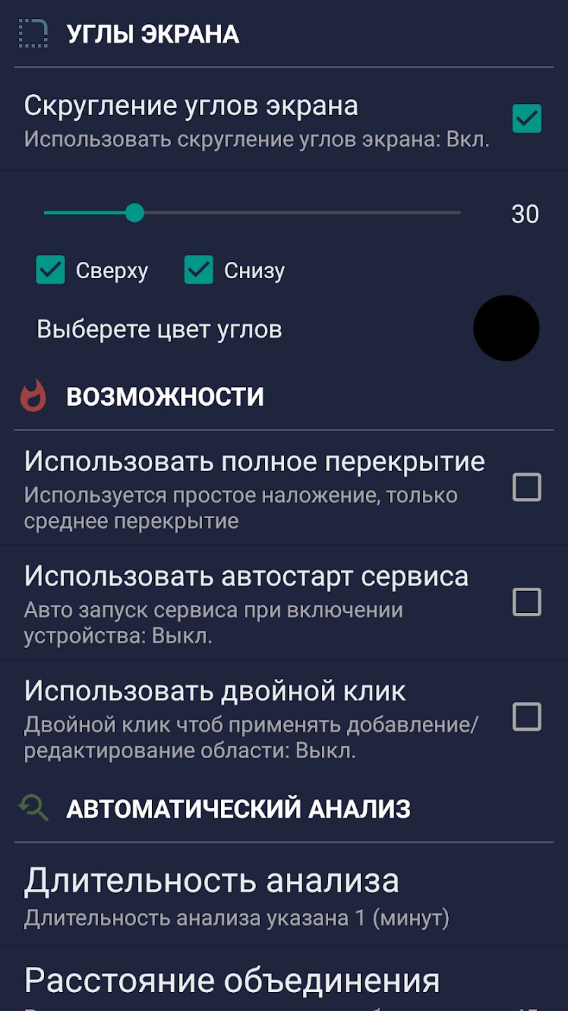 Частичный экран — это незаменимое решение для устройств с треснувшим или неисправным экраном, на котором появляются фантомные касания. Приложение перехватывает все сенсорные жесты в заданных пользователем зонах, предотвращая вмешательство этих случайных вводов в нормальную работу устройства. Для создания этих заблокированных зон предлагается два основных метода: режим автоматического анализа и режим ручной настройки, что дает вам гибкий контроль над восстановлением функциональности экрана.