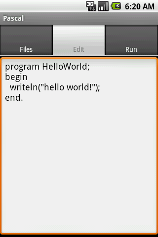 Pascal — простой интерпретатор некогда популярного языка программирования Pascal для Android-коммуникаторов. Есть возможность сохранять и открывать файлы. Для запуска программы достаточно выбрать вкладку Run.