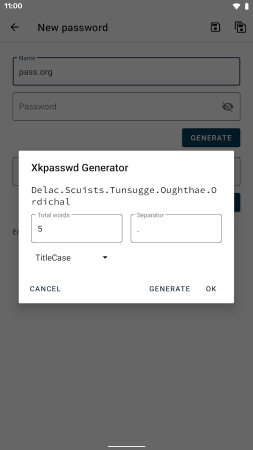 Password Store – клиент для работы с паролями, стремится быть полнофункциональным клиентом и реализует большинство его возможностей.