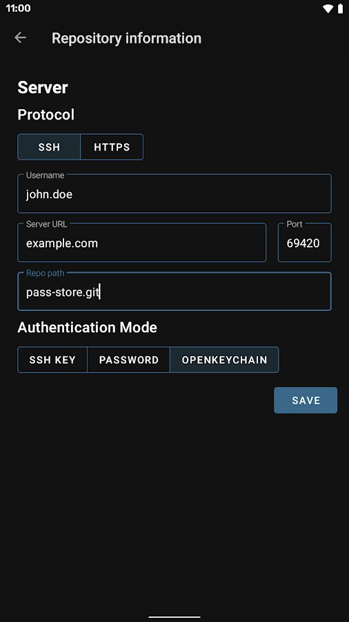Требуется OpenKeychain для шифрования и расшифровки паролей.