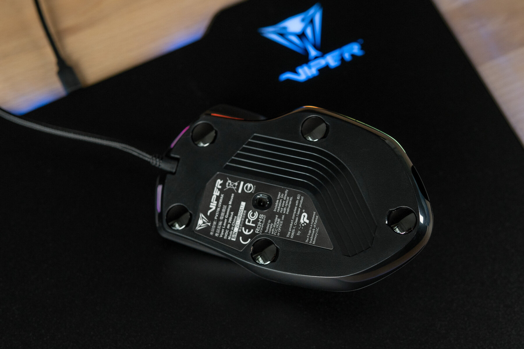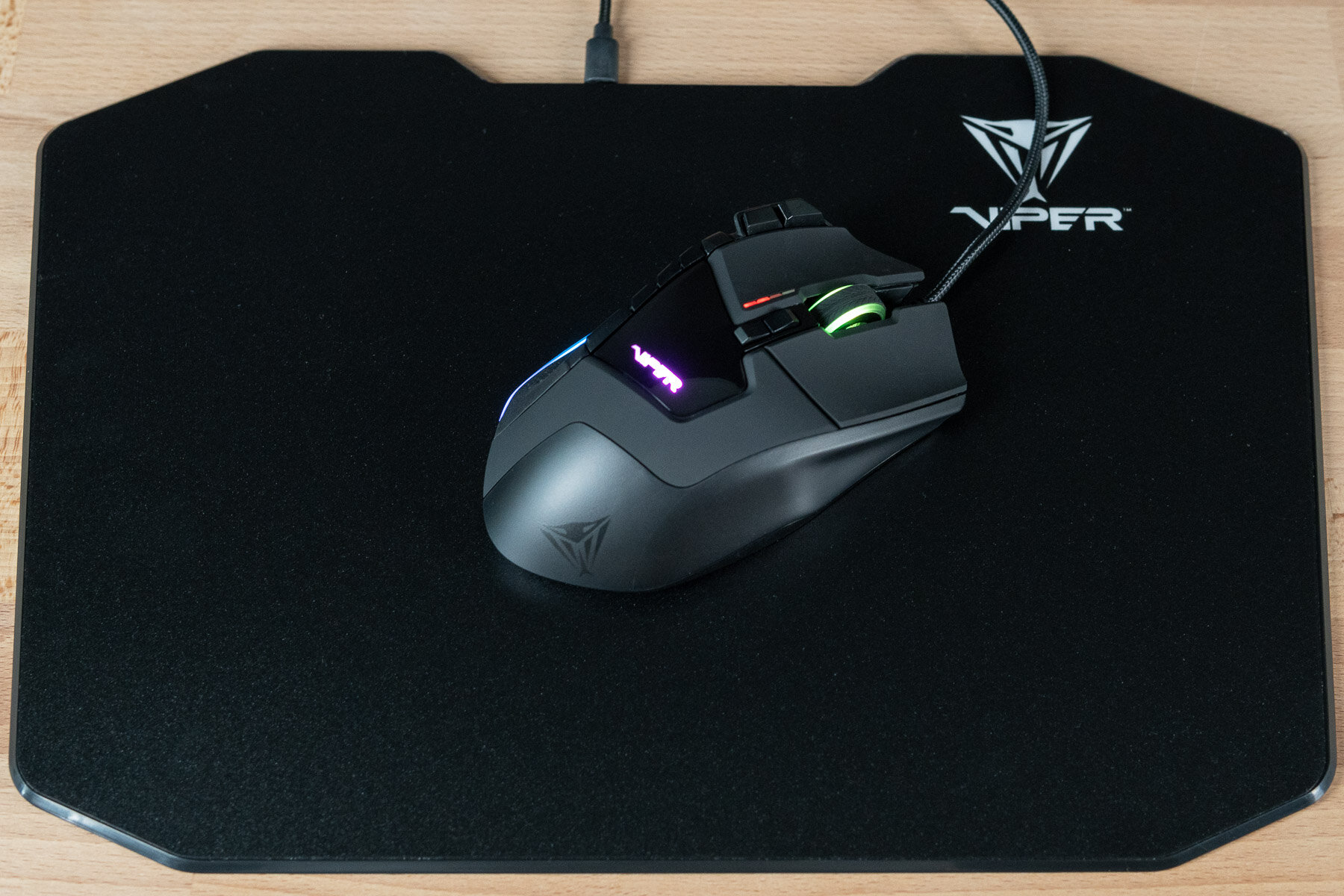 Преимущества керамических ножек в полной мере раскрываются на фирменном твёрдом коврике Viper Gaming LED. Размеры небольшие — 35 см в ширину и 24 см в высоту. Жёсткая и ровная полимерная поверхность практически не сопротивляется скольжению мыши.