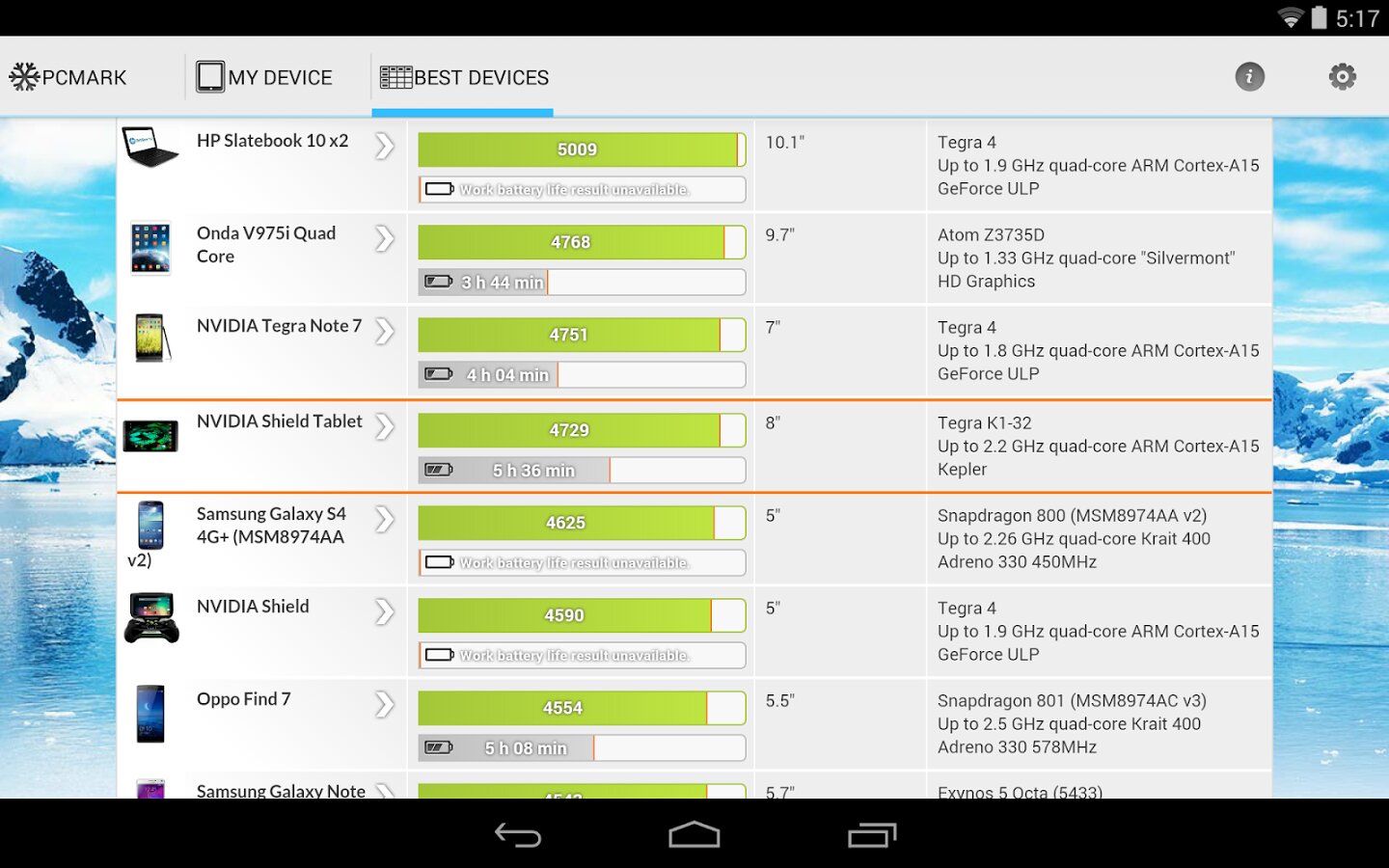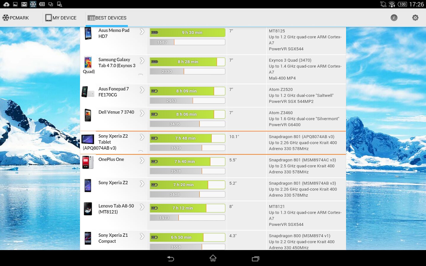 Тестируйте производительность и время разряда аккумулятора смартфонов и планшетов с помощью теста PCMark for Android. Проверьте, как ваше устройство выполняет тест, затем сравните вашу оценку с новейшими моделями.