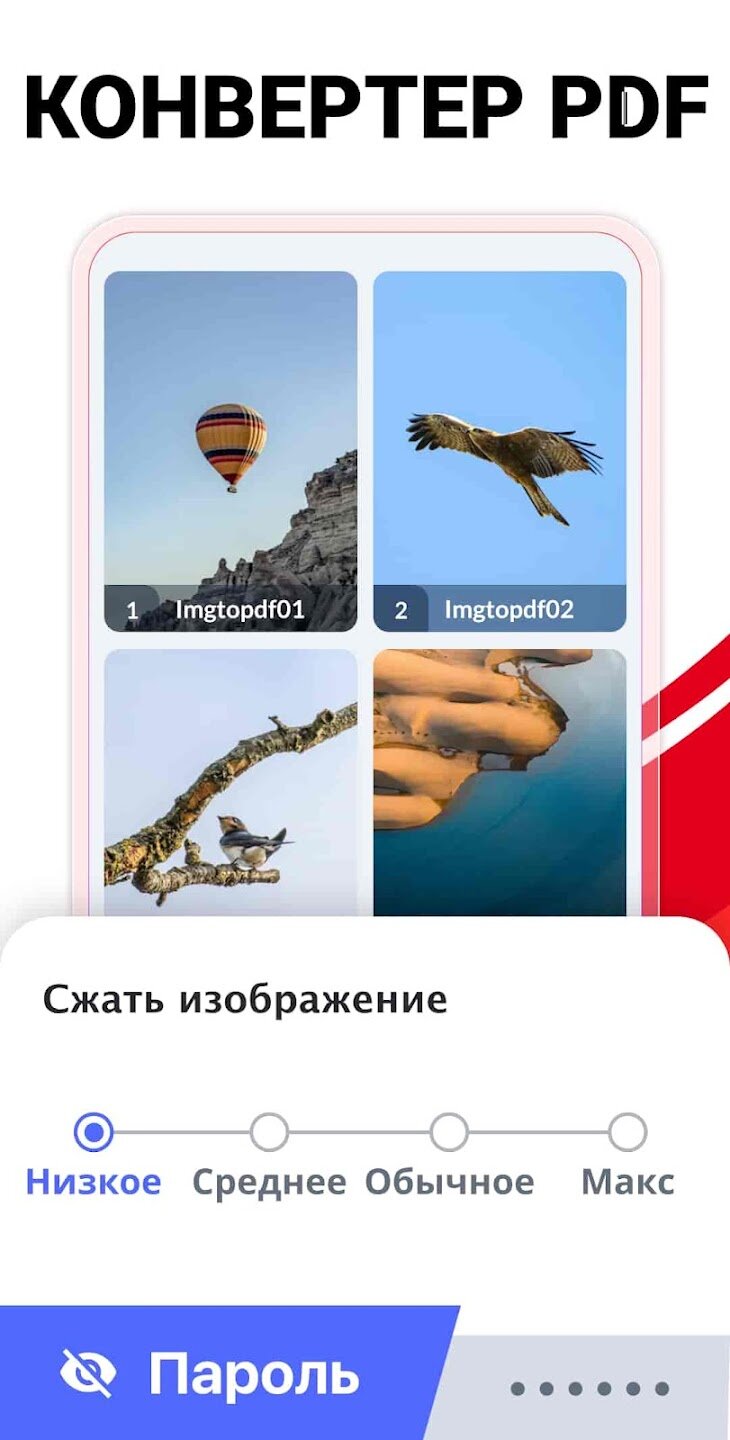 PDF Converter — Photo to PDF — это бесплатный и полностью автономный инструмент для преобразования изображений в документы PDF. Это приложение позволяет быстро преобразовывать фотографии, сканы, квитанции, заметки и другие файлы изображений (JPG, PNG и т. д.) в упорядоченные, доступные для совместного использования и защищенные файлы PDF прямо на вашем устройстве без подключения к Интернету.