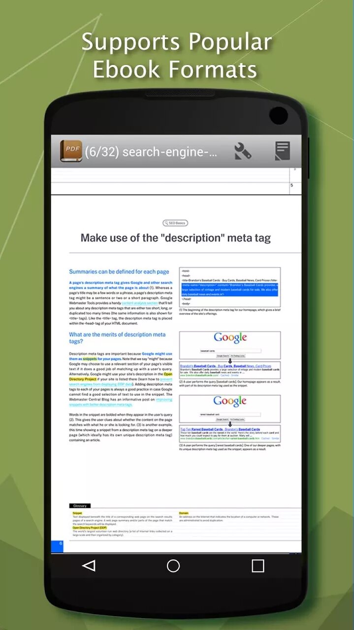 Благодаря данному приложению вы сможете скачивать совершенно любые форматы книг и наслаждаться их прочтением. Больше не нужно переживать о том, а поддерживает ли мое приложение данный формат книги или же нет. Одно приложение на абсолютно все существующие форматы в вашем мобильном.