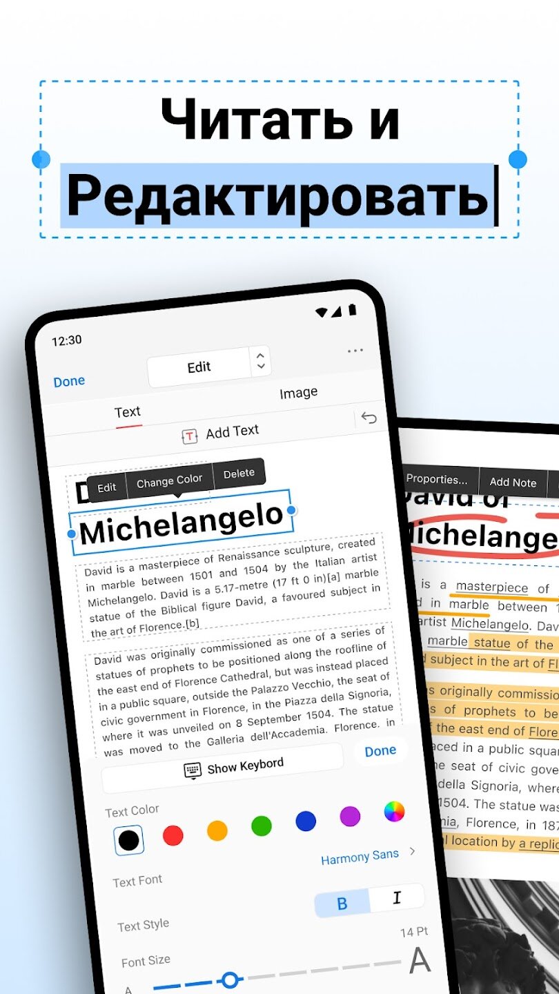 - Возможности прямого редактирования текста и изображений в документе.