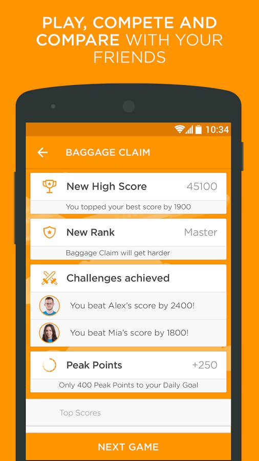 - Работает в автономном режиме, поэтому вы можете наслаждаться играми Peak для мозга, где бы вы ни находились.