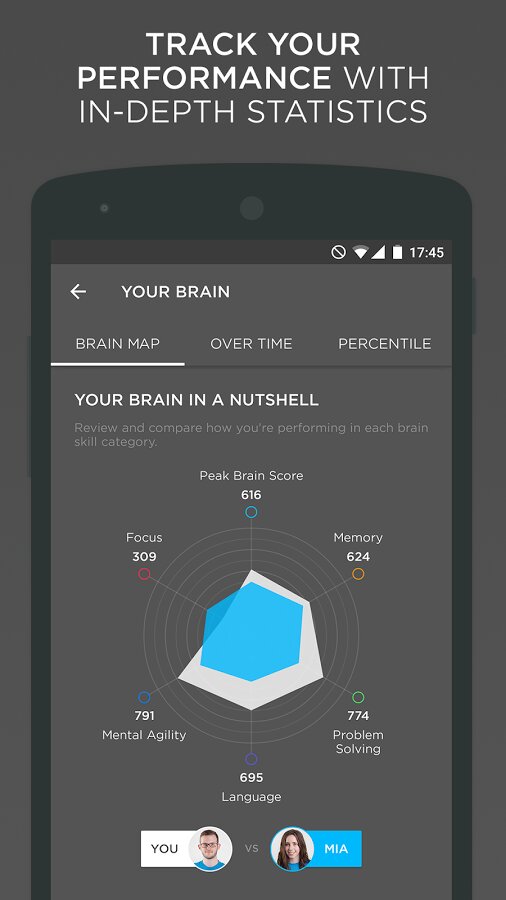 - Узнайте, в каких категориях преуспевает ваш мозг, и соревнуйтесь с друзьями, сравнивая свою карту мозга и производительность игры для мозга.