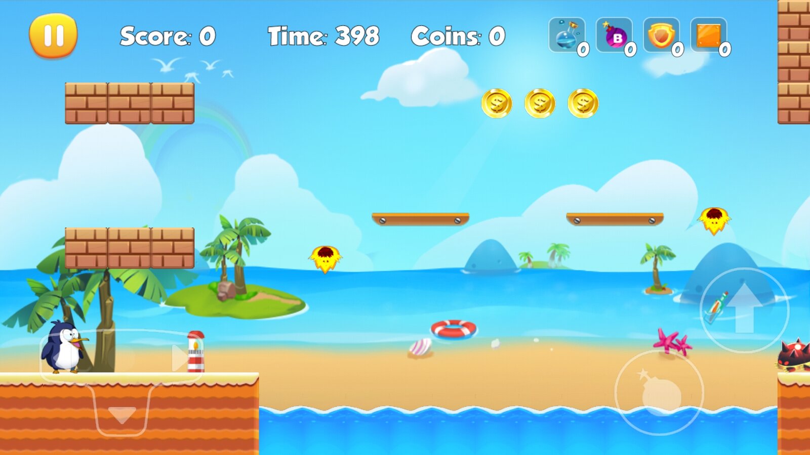 Penguin Run — удивительный пингвина бег и прыжки игра приключения в ледяной мир. В этой приключенческой игре, Маленький пингвин будет бегать и собирать монеты, включение питания, чтобы бороться с боссами. Нажмите, чтобы прыгать и двойное нажатие для двойной прыжок и избежать подводных камней. Остерегайтесь вывесок и завершить все уровни.
