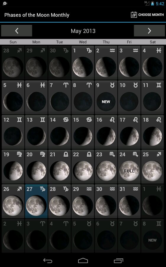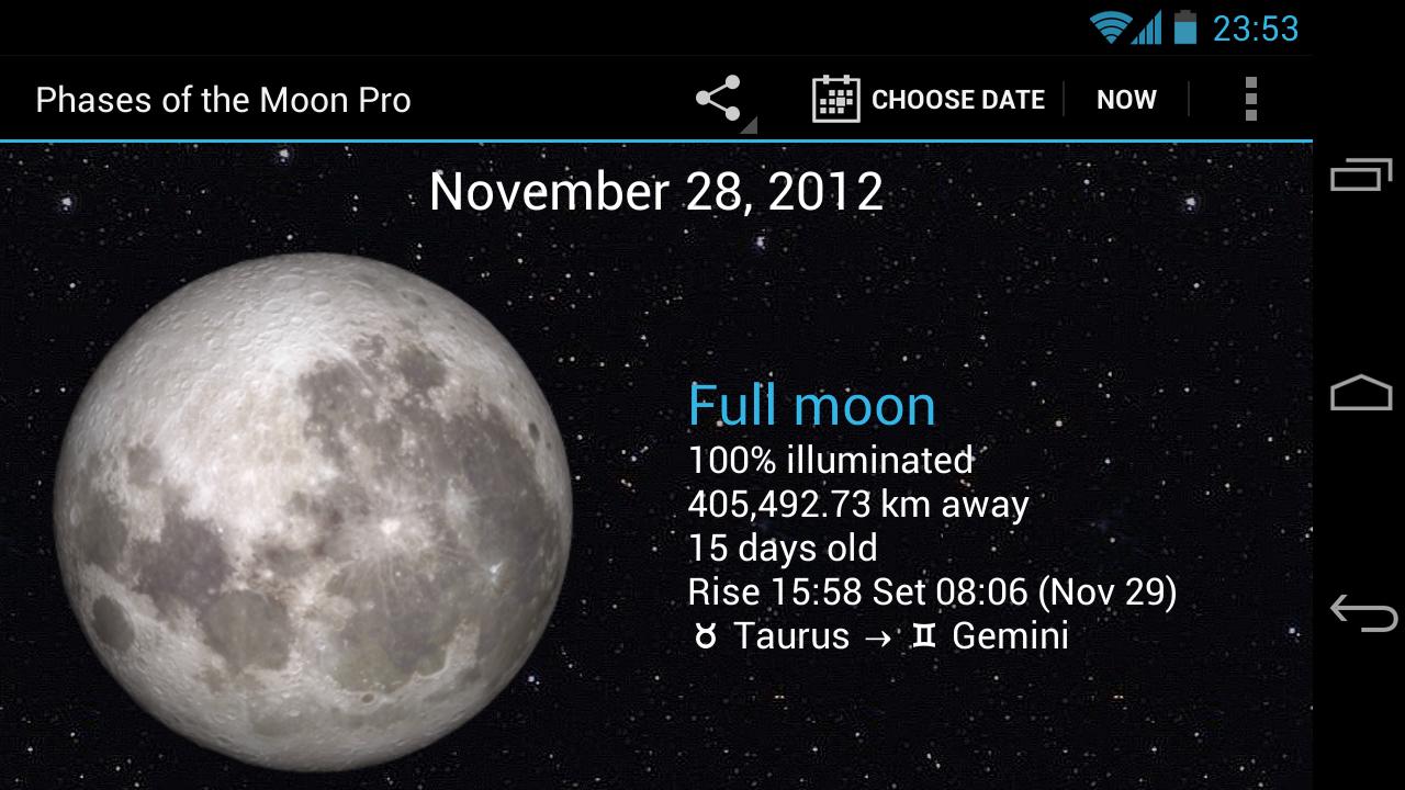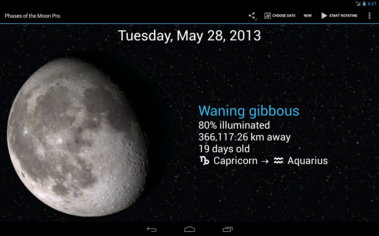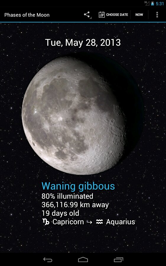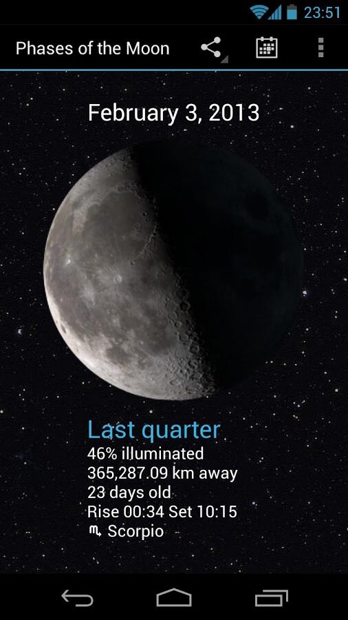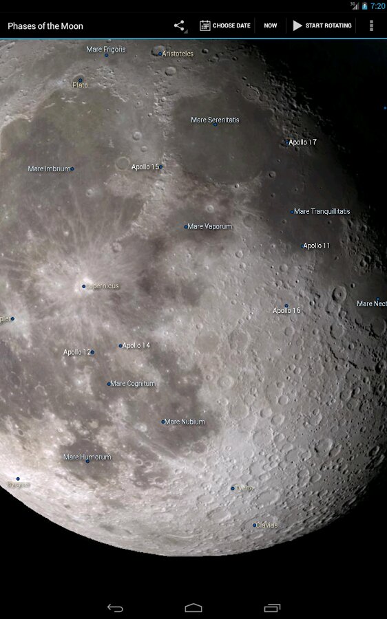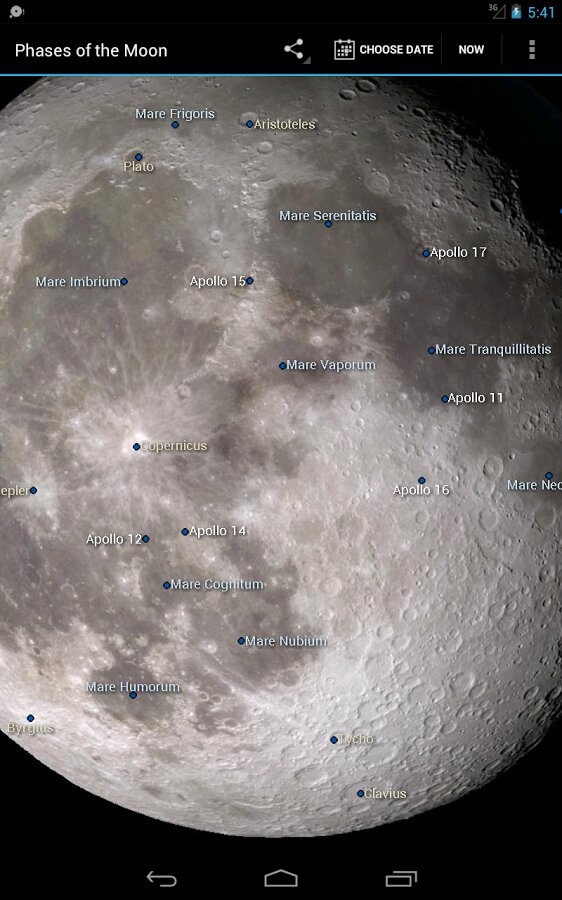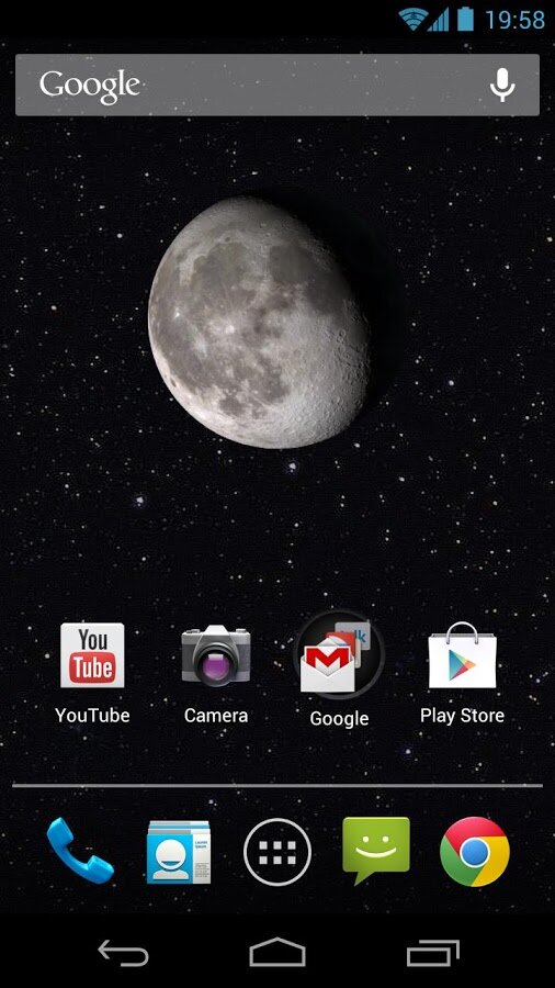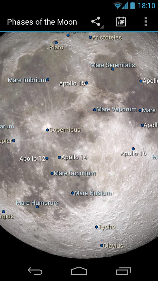 Фазы Луны — приложение показывает текущую фазу луны, используя имитацию лунной поверхности, созданную разведывательной миссией НАСА во время наблюдений Луны.