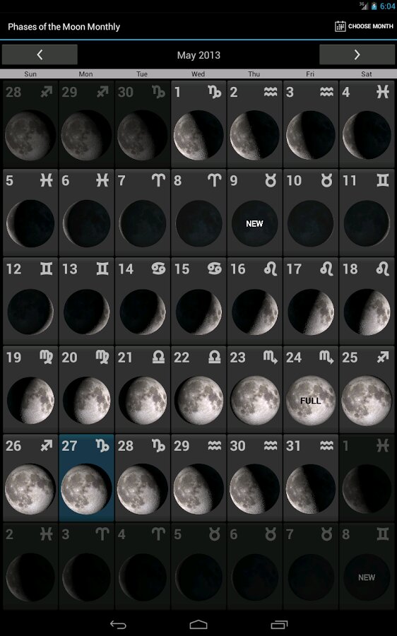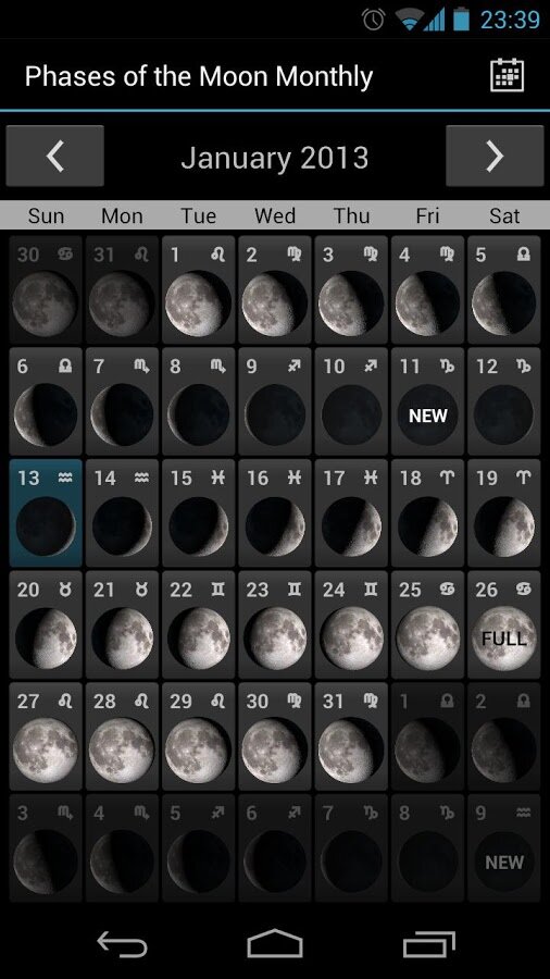 - Вы можете также получить доступ к календарю, который показывает вам фазы Луны на любую дату в будущем.