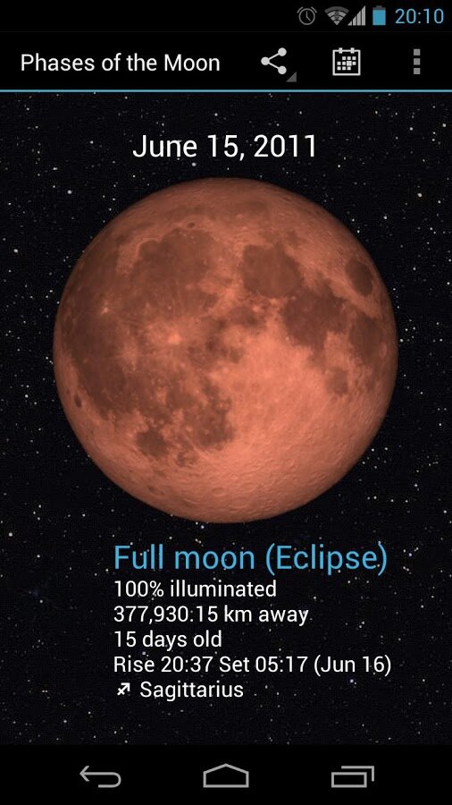 - Проведите пальцем влево и вправо для перемещения вперед или назад во времени, чтобы увидеть, как Луна будет выглядеть в будущем или прошлом.