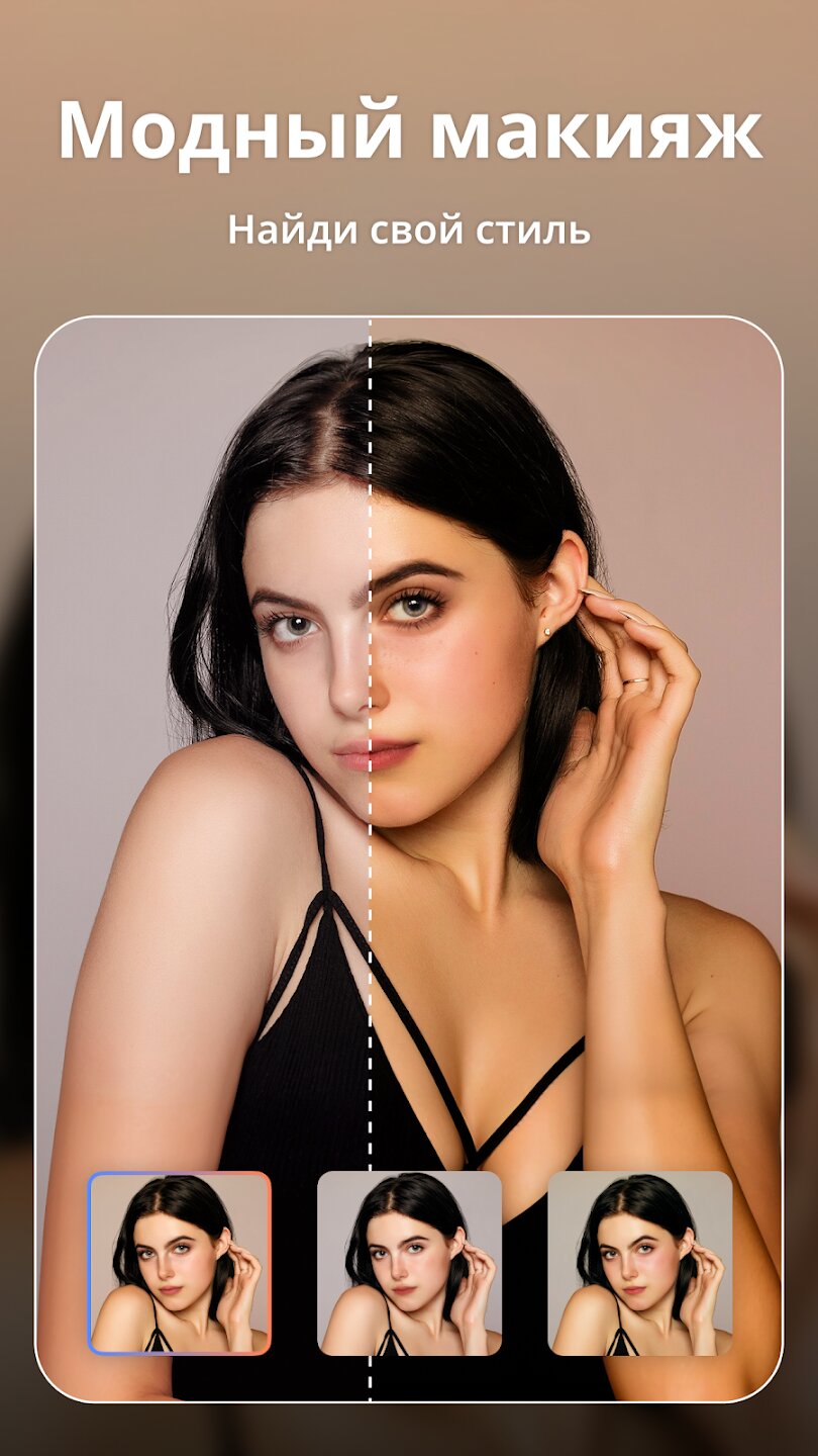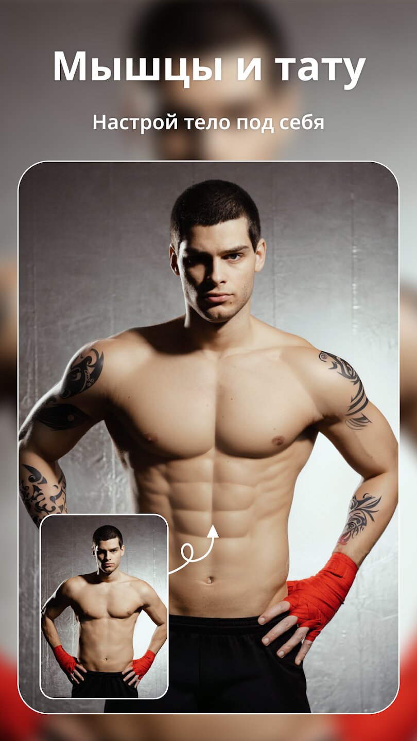Расширенные возможности редактирования включают ретушь портретов, изменение фона и настройку стиля. Интеллектуальные инструменты улучшат кожу, выделят глаза и скорректируют черты лица для естественного результата. Вы можете экспериментировать с виртуальным макияжем, тонированием и даже корректировать фигуру с помощью продвинутого мышечного редактирования.