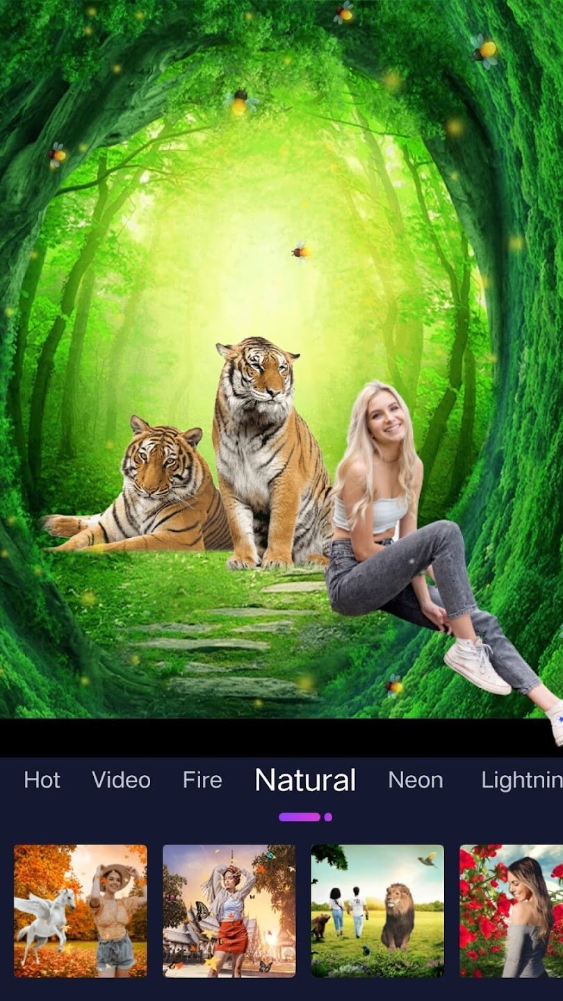 Этот редактор предоставляет обширную библиотеку стилей, которые удовлетворят любое творческое видение. Вы можете уйти в спокойные «Натуральные стили» с пейзажами и животными, создать романтические моменты с помощью специальных «Стилей любви» для особых дат или принять необычное с помощью «Волшебных стилей», которые дарят вам огненные ауры, молниеносную силу и ангельские крылья. Основная функция — это автоматический интеллектуальный сменщик фона, который мгновенно придает вашему визуальному контенту совершенно новый и профессиональный вид без каких-либо ручных операций.