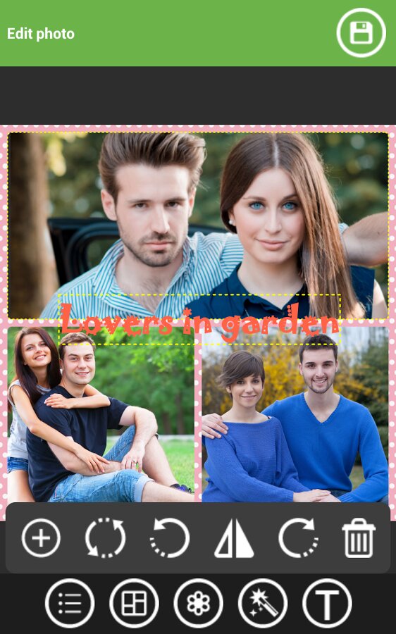 - Добавление текста с красивыми шрифтами, легкое редактирование одним касанием