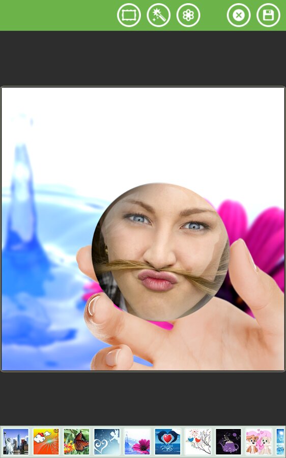 - Красивые рамки, возможность поворота, перемещения и масштабирования с помощью пальцев, мгновенное применение основных фильтров