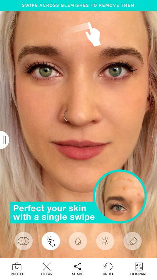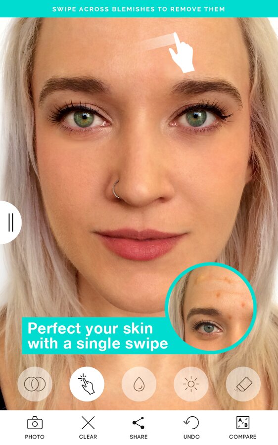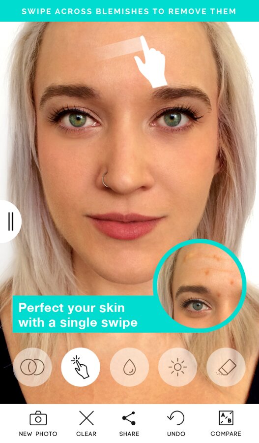 Инструмент Совершенствование: Получить идеально ровную кожу, удаление прыщей, темных пятен и мелких пятен. Просто проведите пораженные участки пальцем и увидите мгновенный результат!