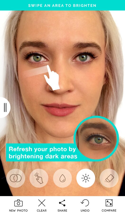 Инструмент Осветления: Восстановите природный блеск на коже. Украсьте свой цвет лица, проводя через нужной области. Попрощайтесь с тех Undereye мешки!