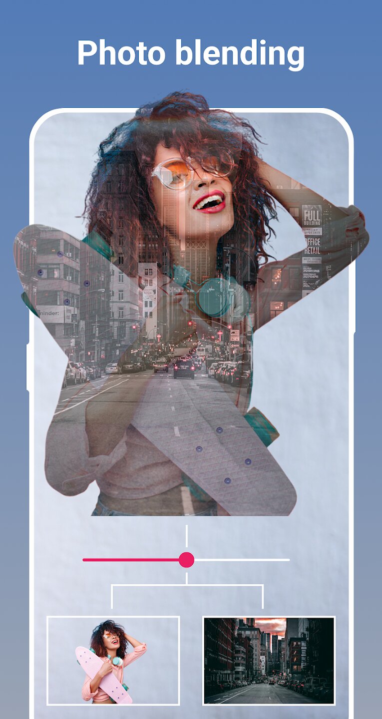 Функция фотоколлажа позволяет сшивать от 2 до 8 изображений в красивые предварительно разработанные макеты. Функция Photo Blender позволяет вам смешивать два изображения вместе с расширенными инструментами смешивания.