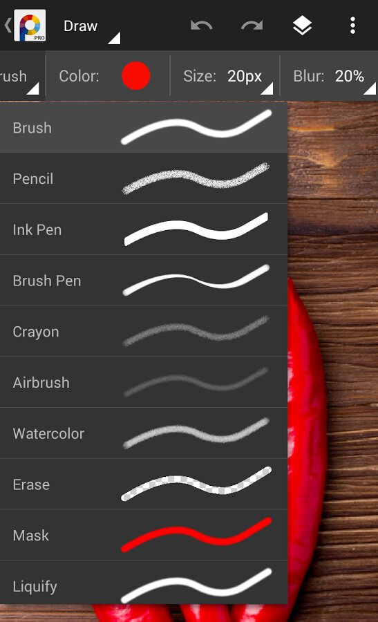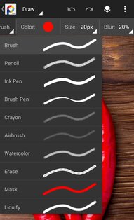 - Работайте с широким набором новых кистей — карандашом, чернильным пером, кистью, мелком, аэрографом и акварелью.
