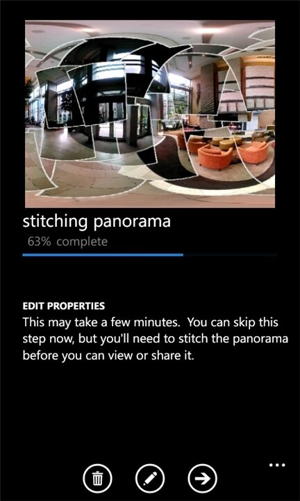 Откройте приложение и на стартовом экране нажмите «tap to start» в окошке видоискателя. Покажите телефону все, что хотите включить в свою панораму. Все нужные снимки он сделает самостоятельно, а вам подскажет, что нужно сделать еще или напротив, чего делать не нужно. После обработки изображений, вашей работе можно присвоить имя, приложение автоматически определит, где именно были сделаны снимки и «протегирует» их соответствующими координатами.