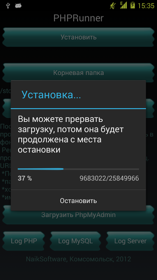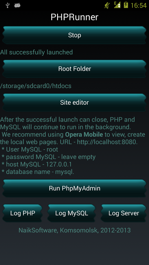 PHPRunner — программа запускает скомпилированные под arm lighttp, PHP 5.4.4, MySQL.