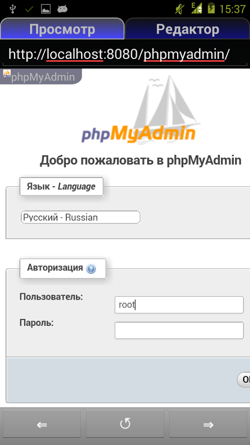1) В phpmyadmin не работает вкладка «Структура» — В памяти телефона в корне перед запуском сервера создаем папку tmp (нужен root)