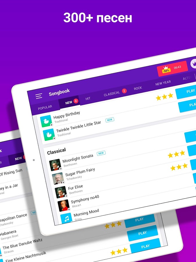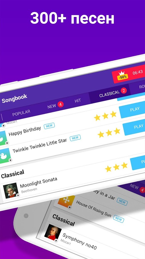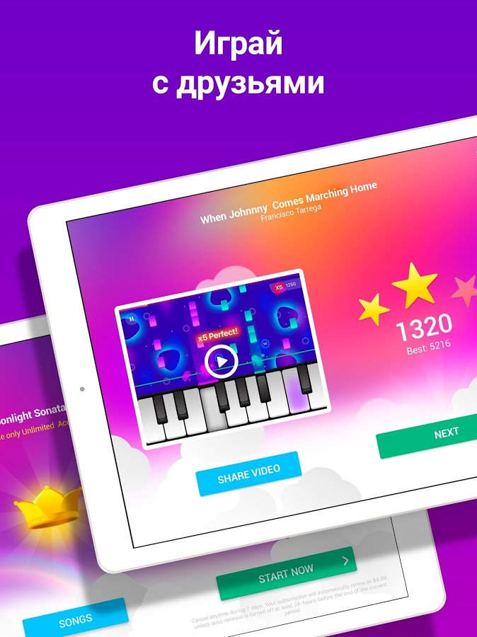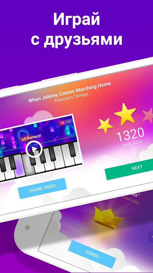 К виртуальному пианино в приложении есть звуковые эффекты, заставляющие классический инструмент звучать, как орган, клавесин или даже электрогитара. Все эти дополнения записаны с реальных инструментов. Не хотите играть на клавишах? Можно выбрать арфу, скрипку, банджо. Выберите произведение от Баха и Бетховена до современных хитов, поделитесь своим мастерством в соцсетях, и пусть друзья удивятся и порадуются.
