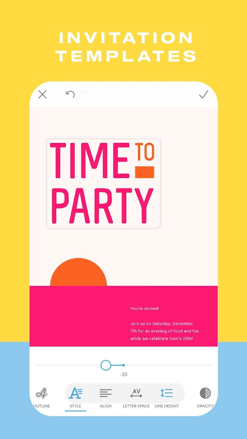 - Настраиваемое редактирование текста с тенями, интервалами и шрифтами.