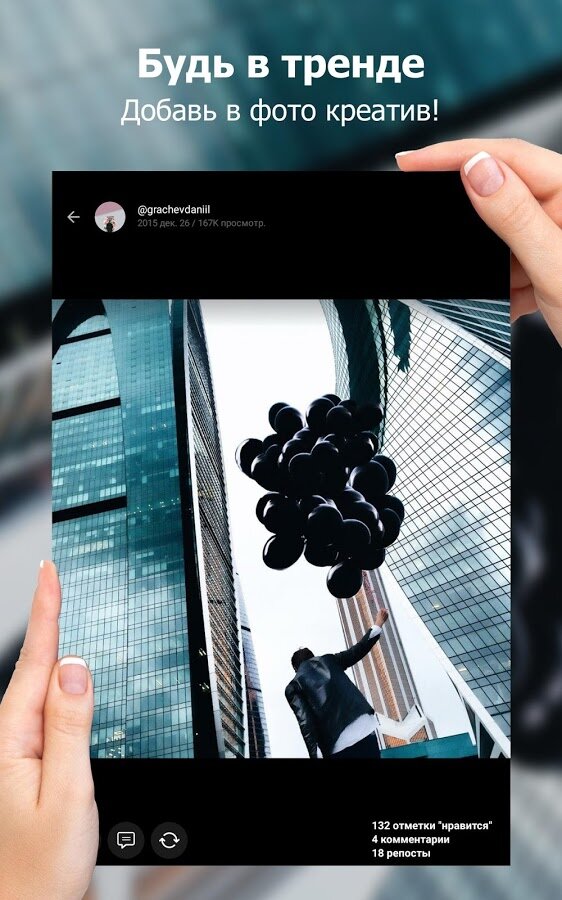 - В Picsart можно обрезать фото под любой размер или социальную сеть. В редакторе фото есть размытие фона и камера с эффектами