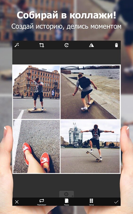 - Делай фото коллаж по шаблонам или добавляй рамки