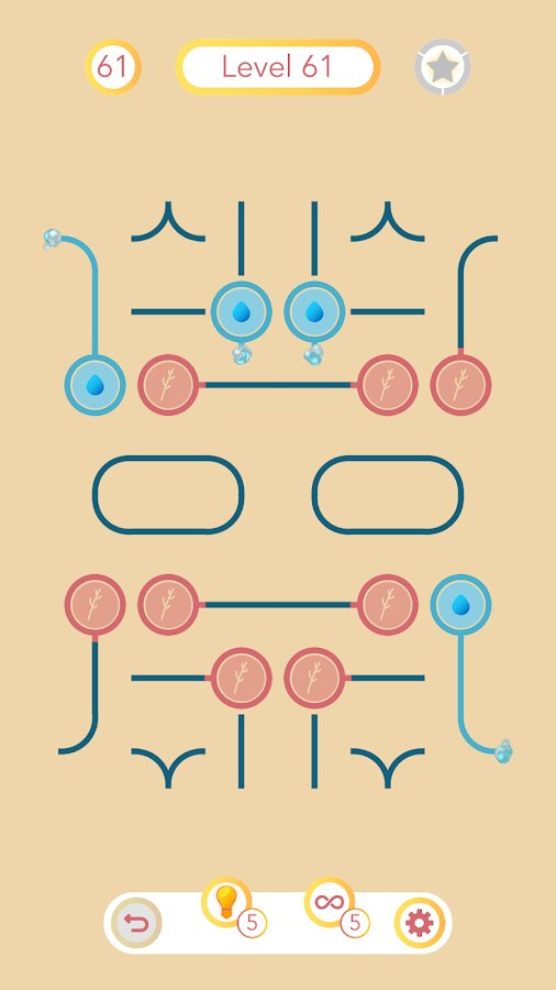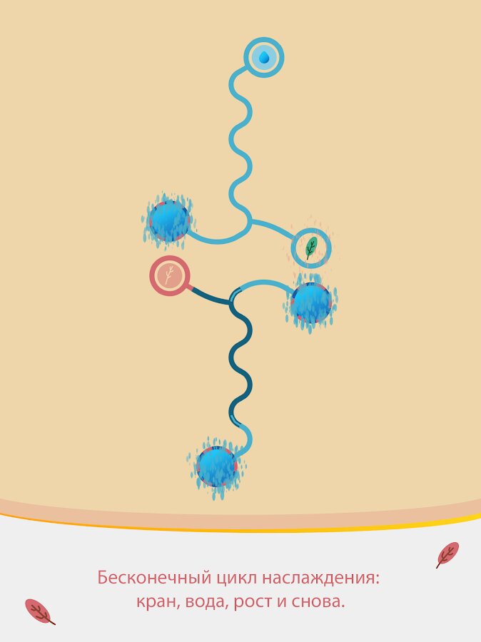 - Простое управление: просто нажимайте на трубы, чтобы повернуть и создать петли для орошения. Вода потечет по мере создания связей к конечным точкам.