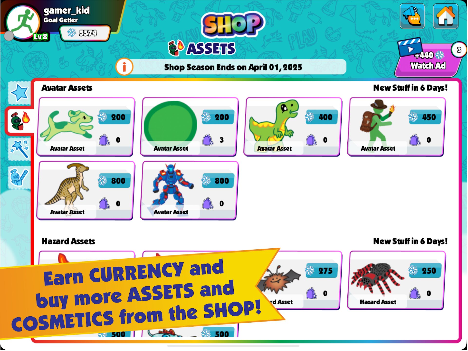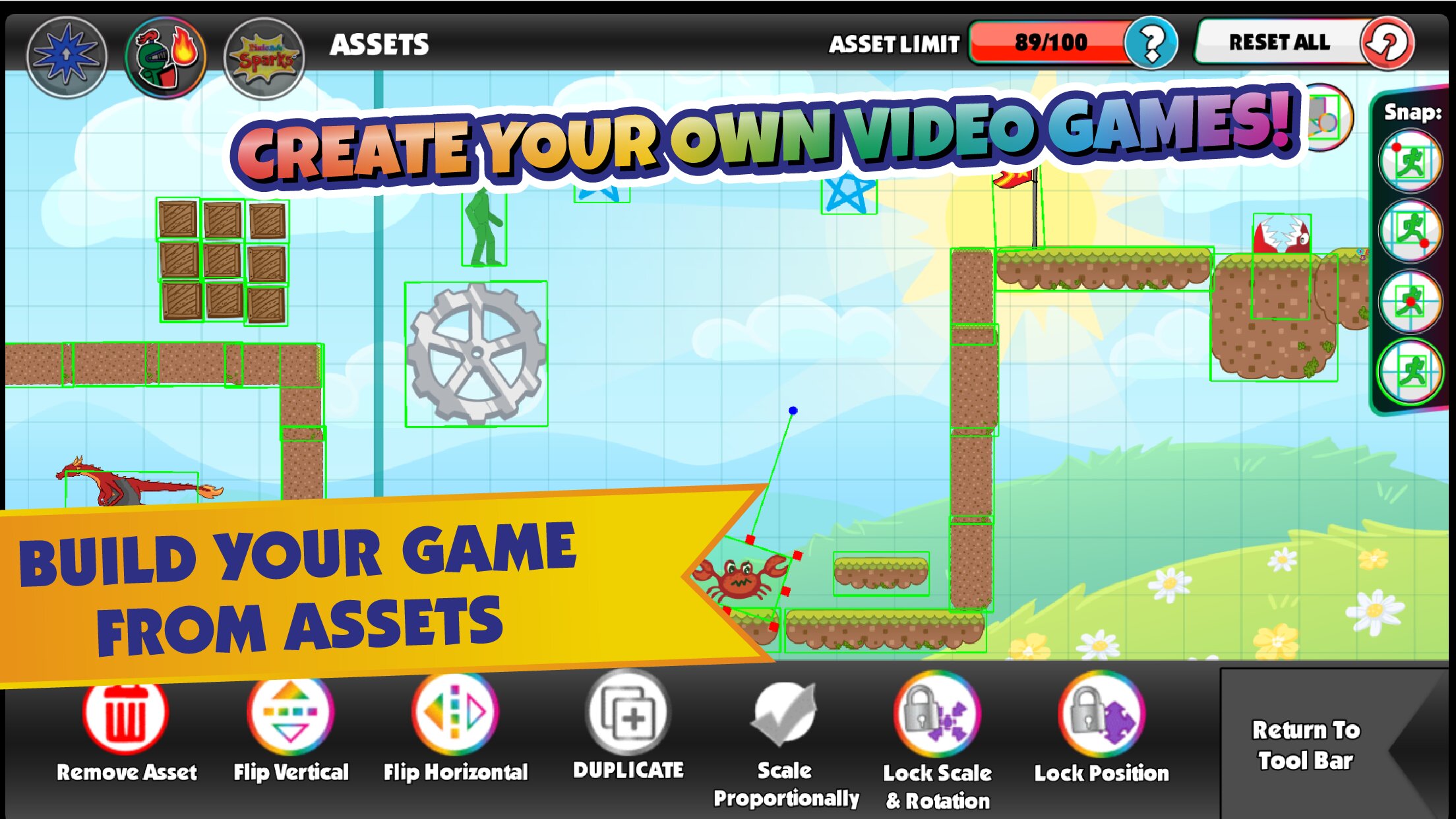 - Добавляйте препятствия, бонусы, цели и косметические элементы, такие как музыка.