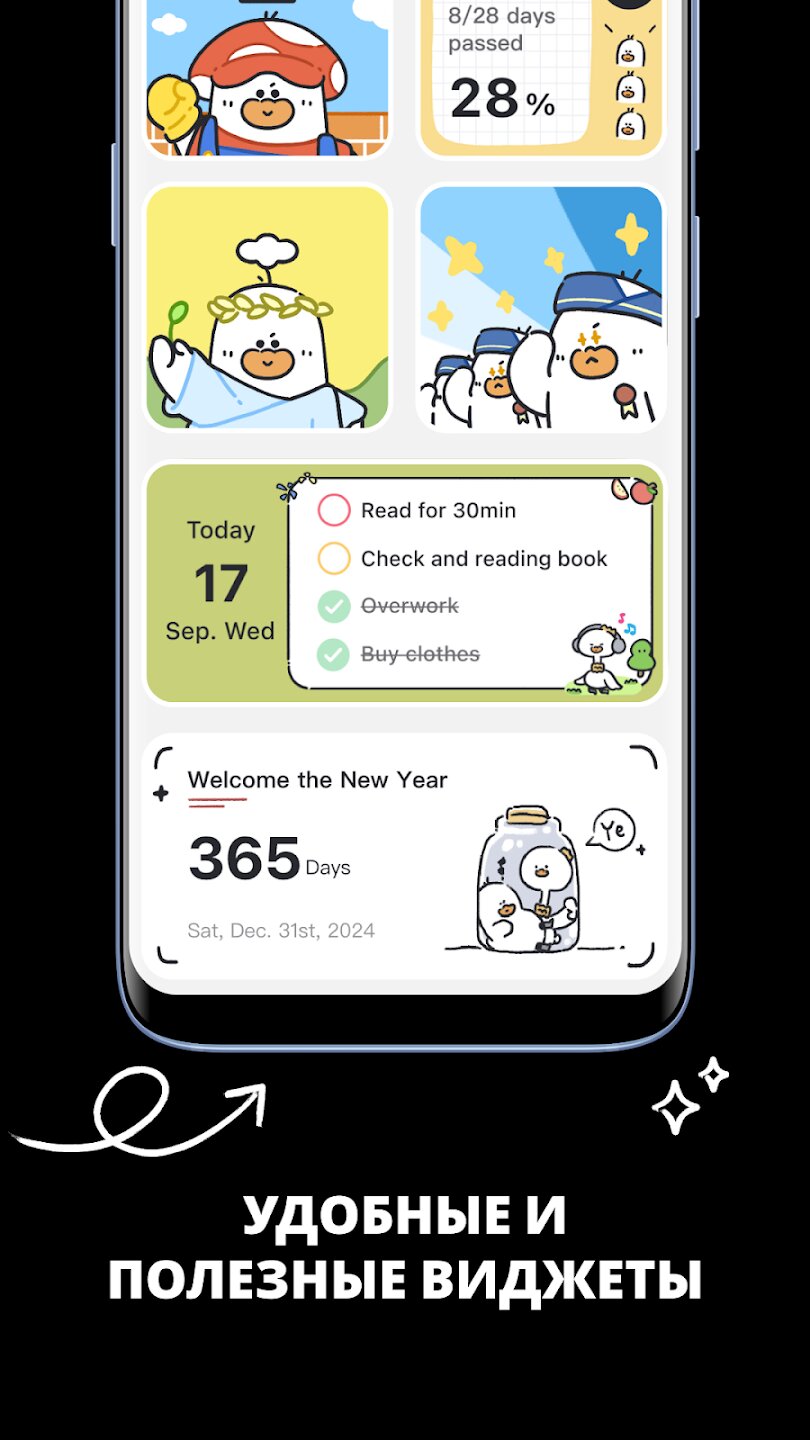 - Виджеты на главном экране со счетчиками прогресса