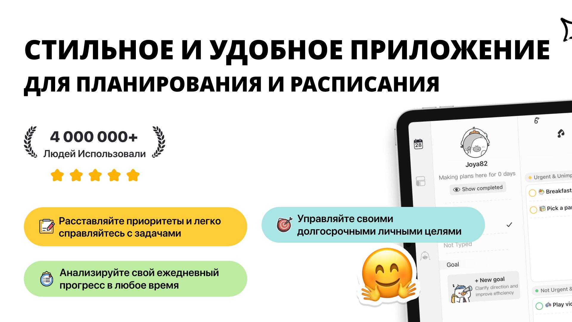 Plan Joy — это интеллектуальное приложение для планирования и повышения продуктивности с интегрированными инструментами управления задачами.