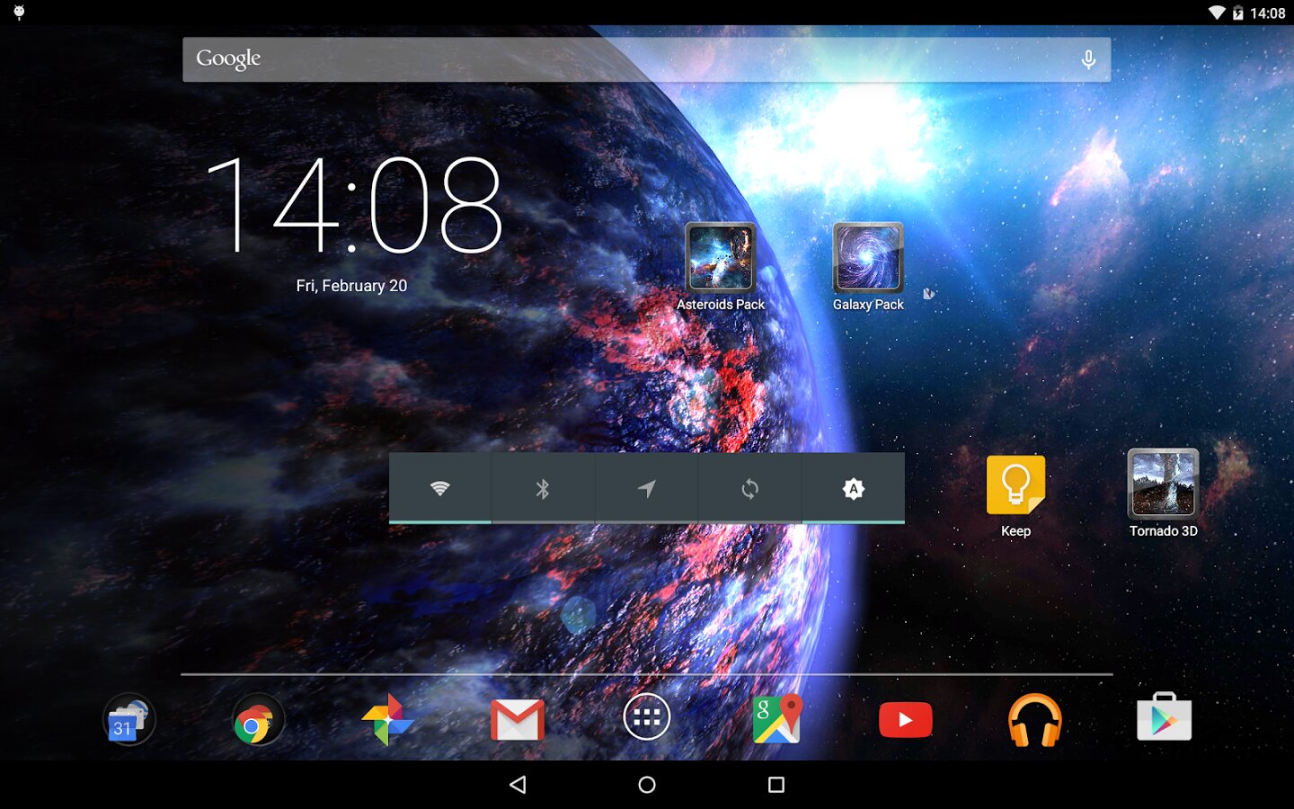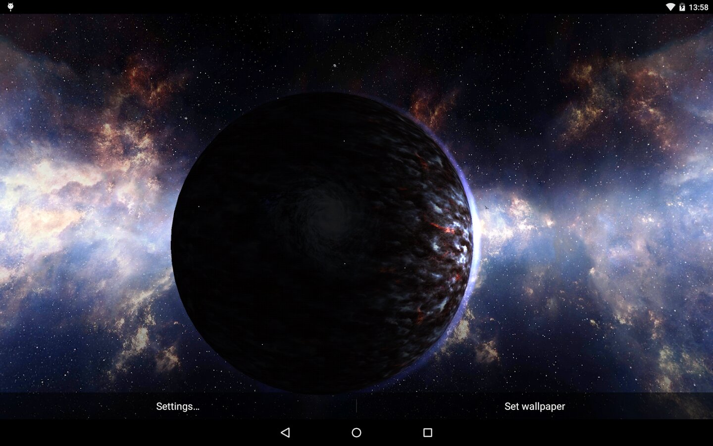 Planets Pack — великолепные живые обои которые покажут вам красоту нашей галактики, особенно самых красивых планет. Инферно, Пегасус, Колосс и т.д. В данный момент вы моете выбрать одну из девяти имеющихся планет со множеством вариантов настроек, таких как скорость вращения, освещение, типы облаков, скорость ветра на поверхности и т.д.