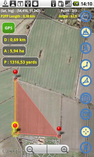 Планиметр — GPS измерения — измерение и вычисление расстояния, площади на картах Google.