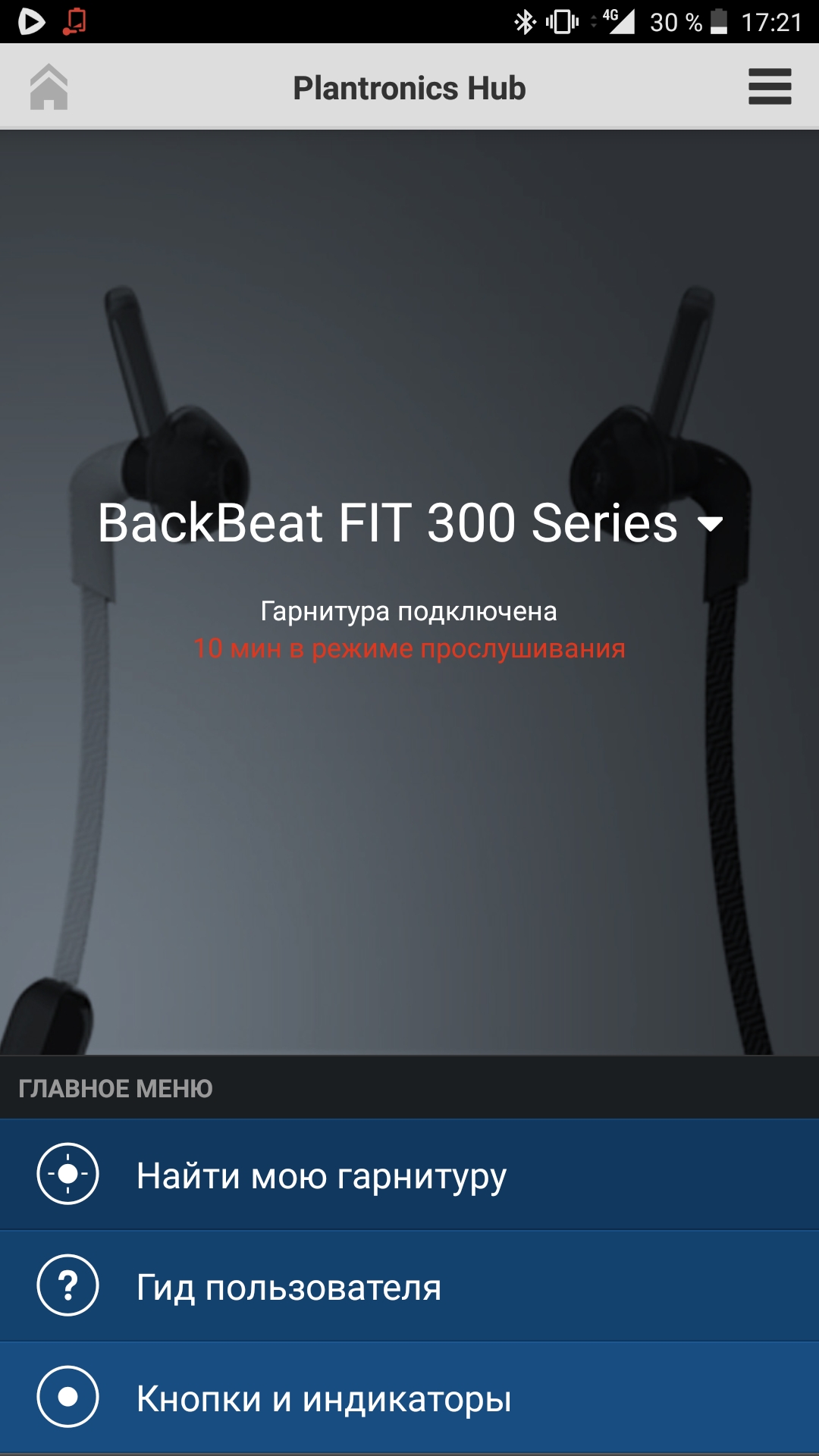 Обе модели наушников совместимы с фирменной утилитой Plantronics Hub. Её главная функция — отображение заряда аккумулятора в пересчёте на время воспроизведения музыки, шкала достаточно точная. Что очень кстати с учётом того, что BackBeat Fit 305 несовместимы со стандартным индикатором батареи для Bluetooth-устройств. У BackBeat Fit этого недостатка нет.