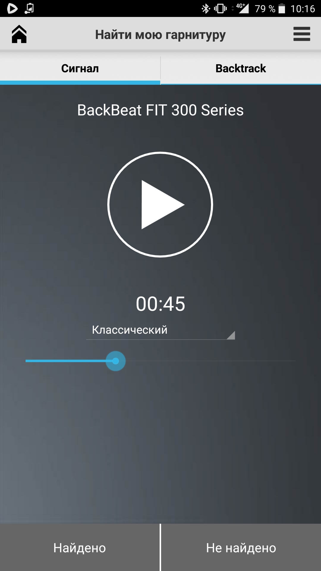 Ещё одна возможность приложения — поиск потерянных наушников. В распоряжении пользователя звуковой сигнал и трекер, показывающий место потери связи.