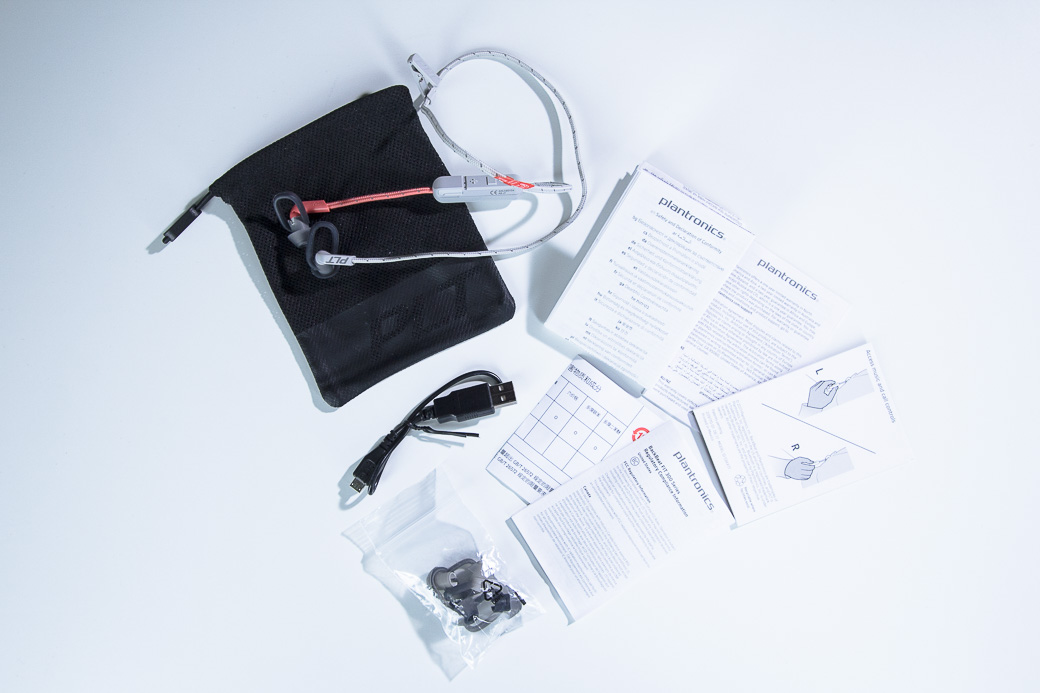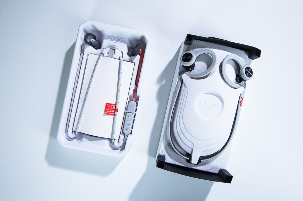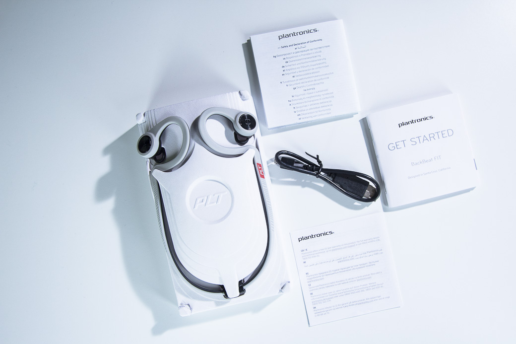 Распаковка хорошего гаджета всегда дарит приятные эмоции, наушники Plantronics — не исключение. Обе модели поставляются в красочно оформленных картонных коробках, их цвет совпадает с цветом самих гарнитур. На упаковке BackBeat Fit предусмотрено дверца на магнитах и окошко для представительного знакомства с дизайном аксессуара. Обе гарнитуры презентабельно уложены на пьедестале из прессованной бумаги.