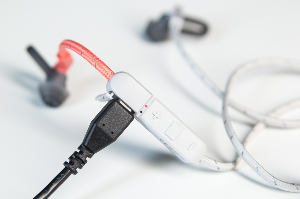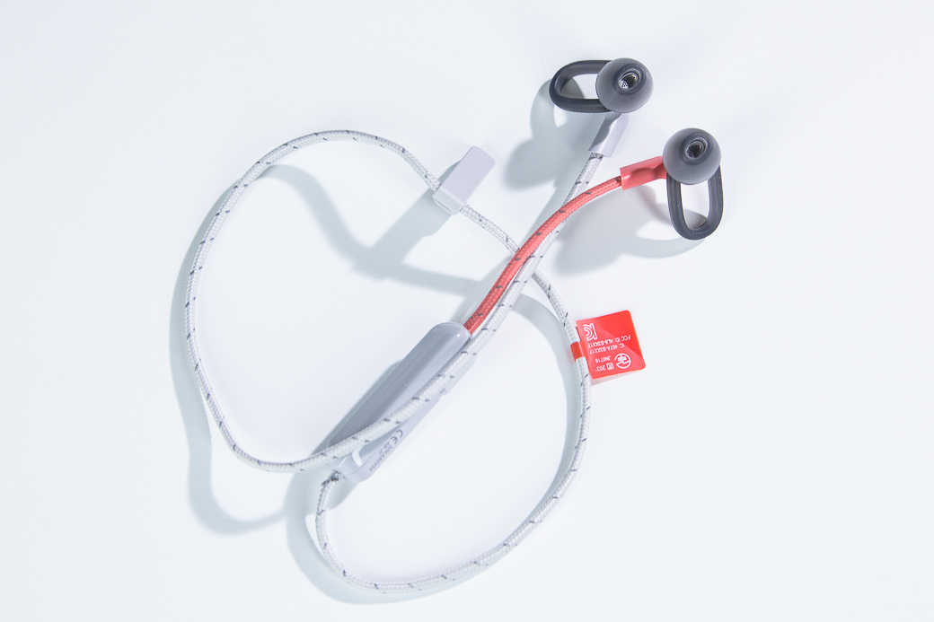 Форм-фактор BackBeat Fit 305 типичен для спортивных гарнитур — кабель в плотной тканевой оплётке связывает оба наушника и пульт управления. В последнем прячется электроника, аккумулятор и разъём зарядки. Как результат, корпус пульта относительно громоздкий — самая тяжелая деталь конструкции.