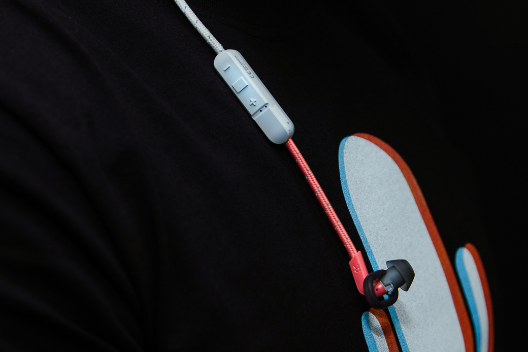 Длины кабеля достаточно, чтобы перекинуть аксессуар с обратной стороны шеи. За надёжную фиксацию гарнитуры отвечает прищепка, равноудаленная от обоих наушников. После закрепления кабель никак не перемещается и не мешает, наушники не вылетают из ушей во время активных упражнений: бега прыжков, катания на велосипеде. Пульт управления также не доставляет неудобств и, вопреки ожиданиям, не ощущается тяжёлым.