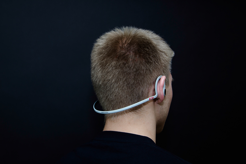 Конструкция с заушником и силиконовым оголовьем компактно размещается на голове и не требует дополнительной фиксации.