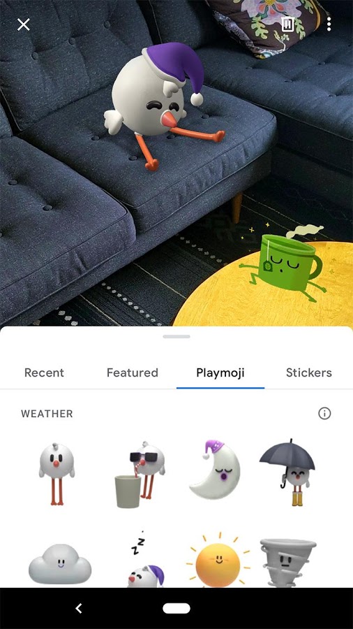 Приложение Playground учитывает то, что происходит вокруг, и предлагает подходящие к ситуации стикеры, которые помогают вам выражать себя. Чтобы использовать Playground, установите последнюю версию приложения ARCore.